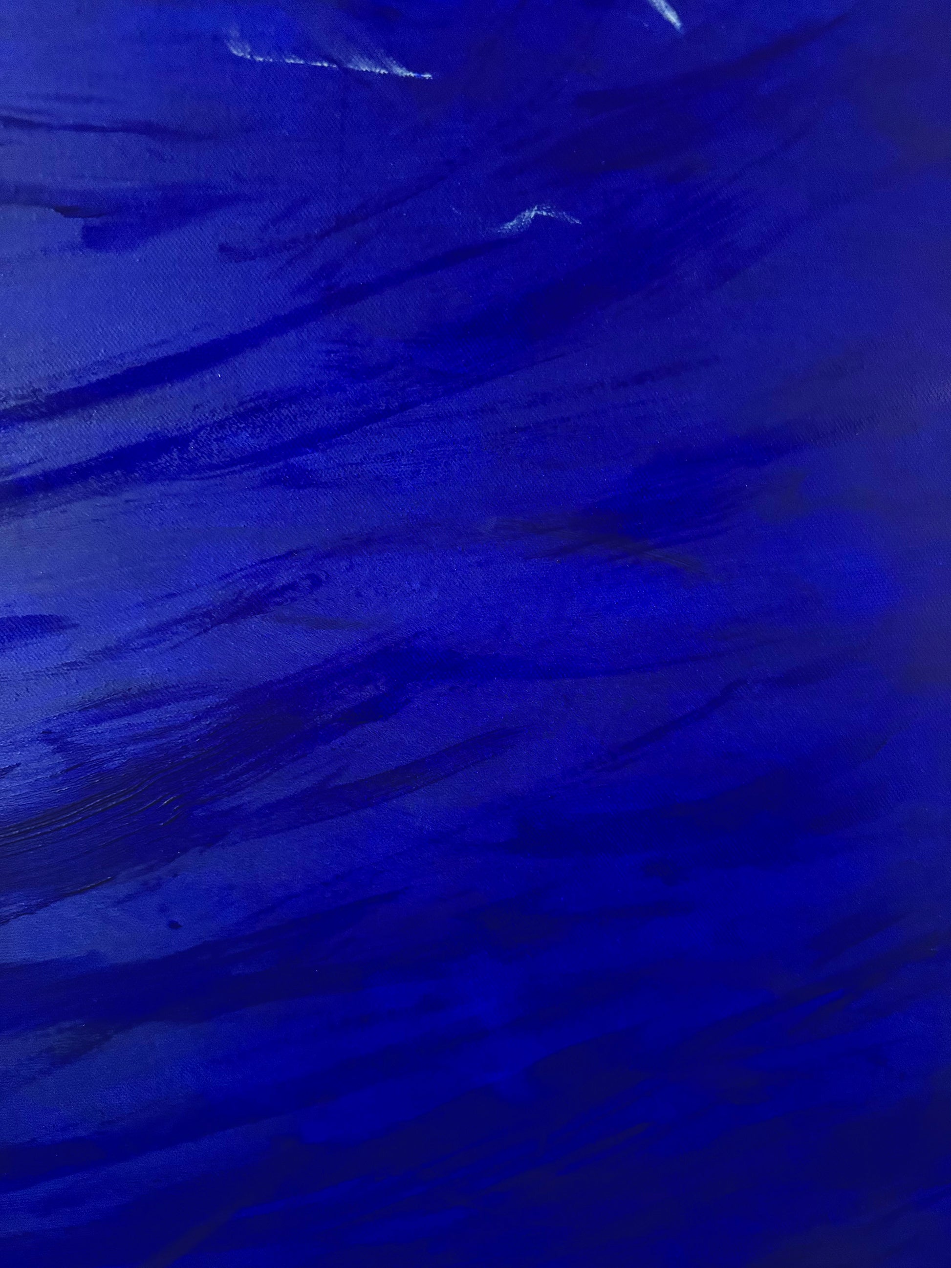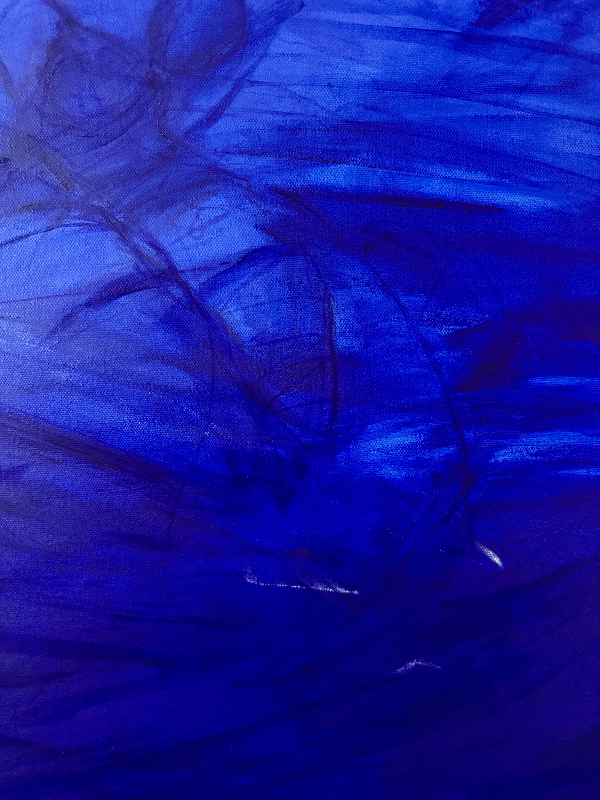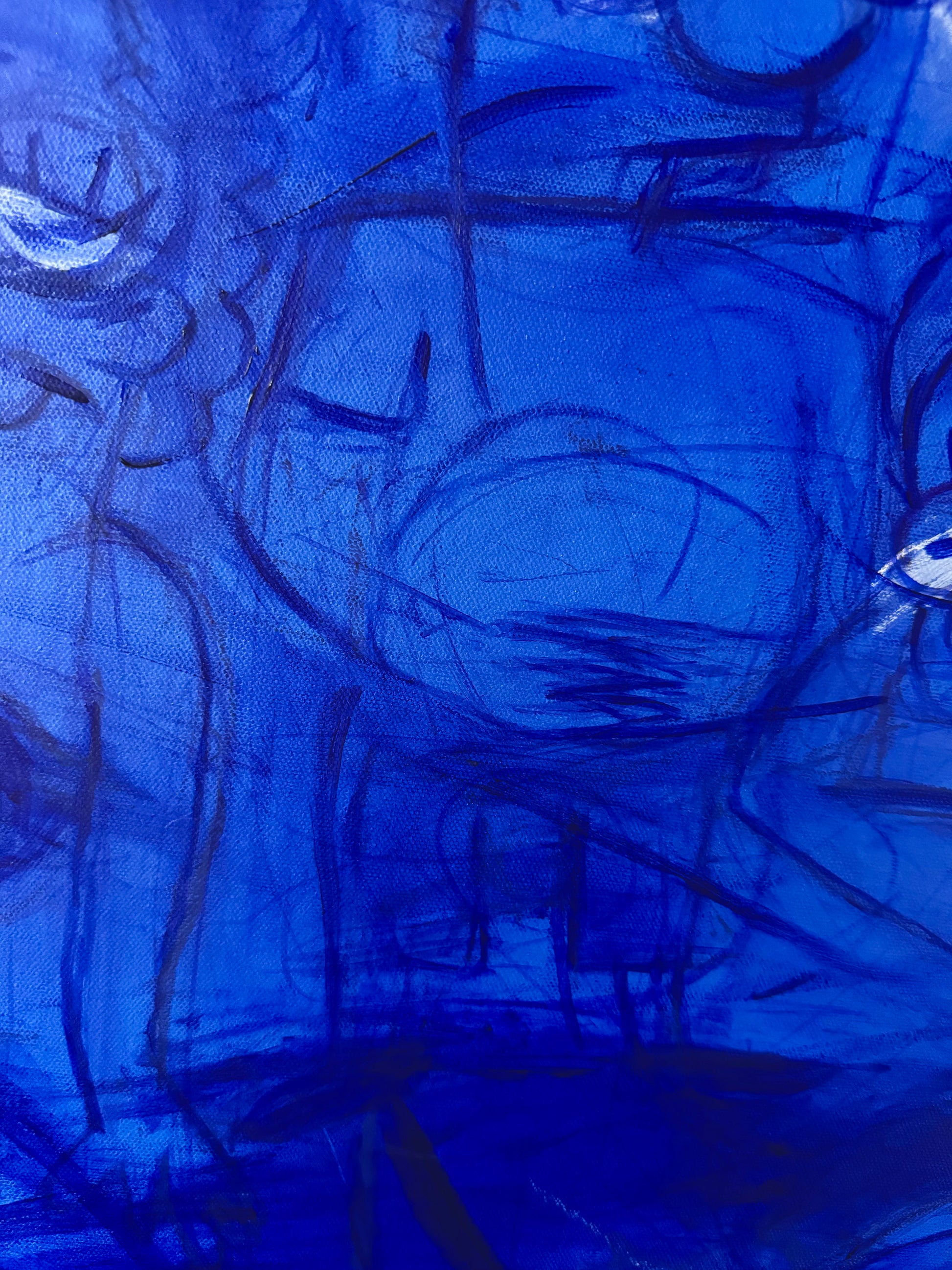 The undercurrent of violence seeps through frenetic mark-making, endless layers of shimmering indigo hint at the price of success.